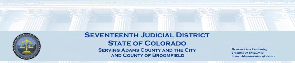 The Judges and Staff of the Seventeenth Judicial District, located at 1100 Judicial Center Drive in Brighton, Colorado and 17 DesCombes Drive in Broomfield, Colorado, have developed this site on the world wide web as a service to the members of the communities that we serve. This site is intended to impart information that may be useful to both attorneys and non-lawyers regarding court contacts, court resources, counseling resources, government information and related subjects.
